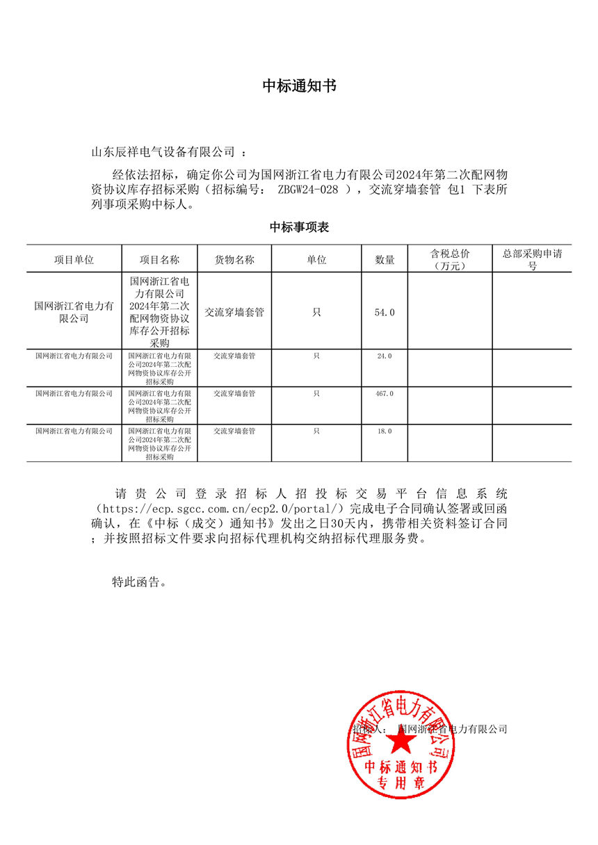 • 2024.11.29 交流穿墻套管中標(biāo)通知書