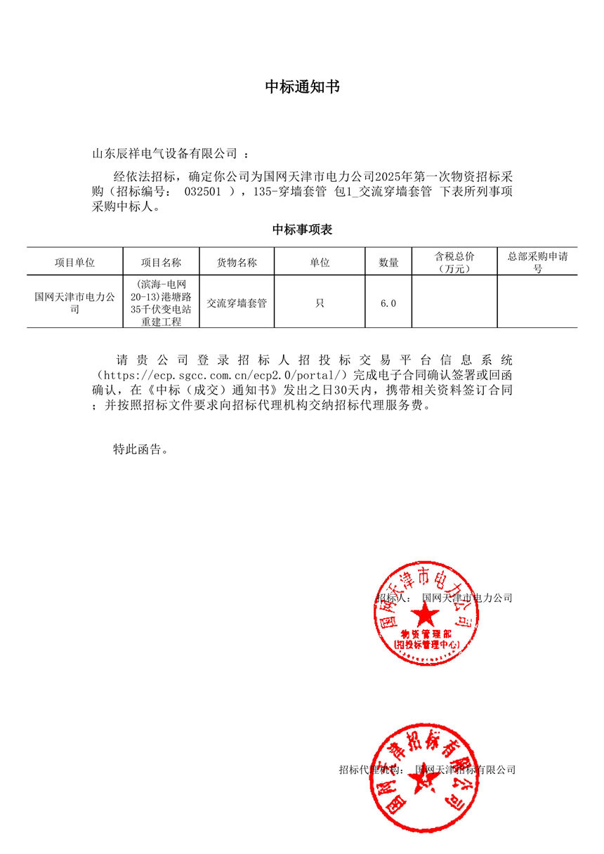 • 2025.01.03 交流穿墻套管中標(biāo)通知書